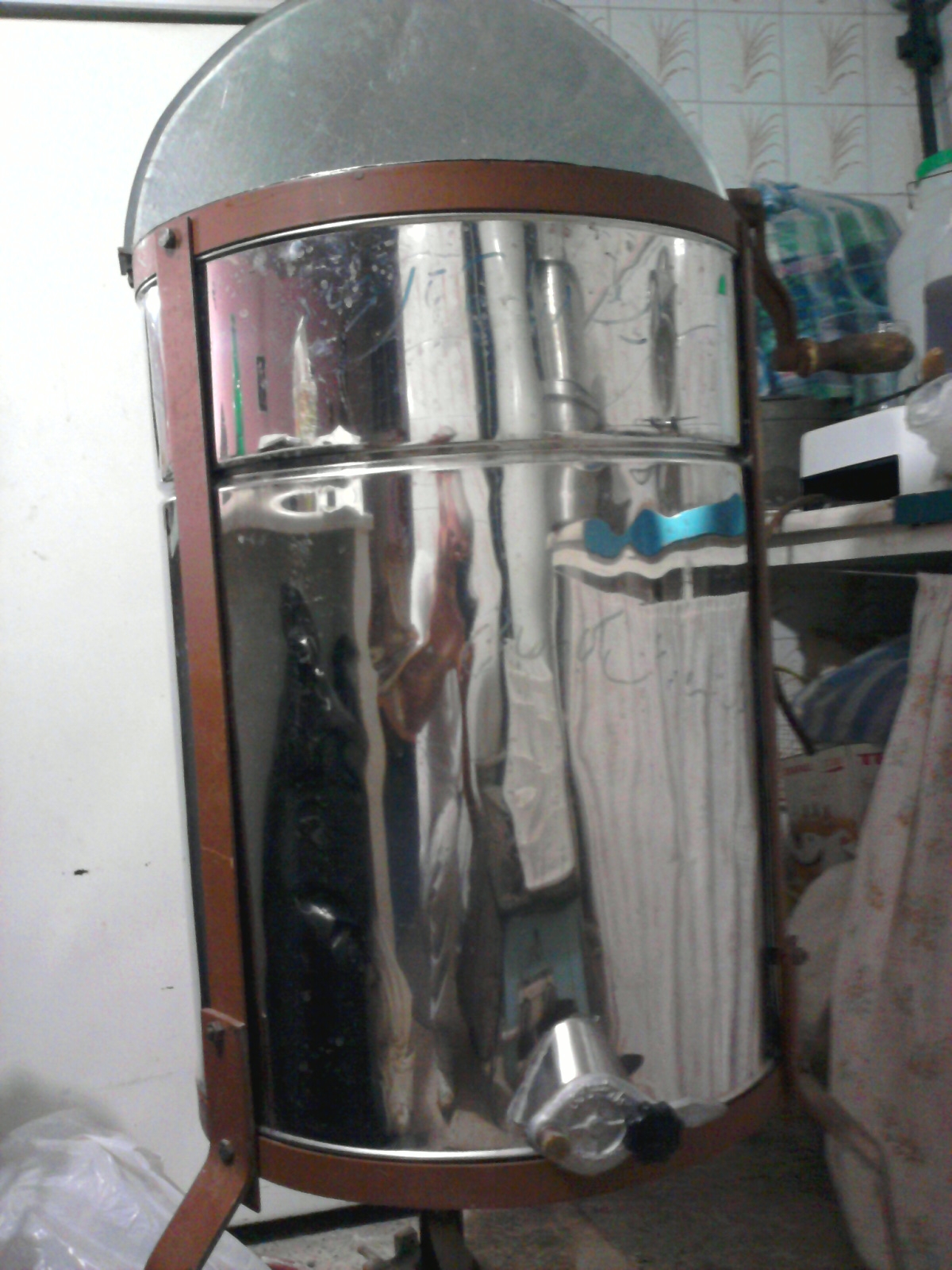 در کل همه قسمت ها به غیر از خود مخزن از فولاد سیاهه.برای مثال قسمت چهارگوش متحرک داخلی(که محل قرارگیری قابهاست)فقط رنگ نقره ای داره.البته بعضی از قسمت ها هم بدون رنگ مونده!!!!در کل وقتی درب مخزن رو برمیدارید،بوی آهن به مشام میاد.خود مخزن هم فقط روکش استیل شده(اگه اشتباه نکنم با کروم روکش شده باشه) و در صورت زخمی شدن مخزن زنگ میزنه.
