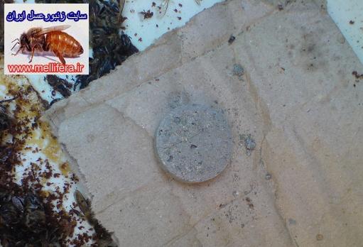 mellifera نوشته شده:این هم تصاویر قرص برنج بعد از چند ماه که داخل کندو گذاشته بودم.نکته مهم اینه که نباید با دست تماس داشته باشه. حتما کاغذی که زیر قرص قرار میدین سفت و 5 برابر خود قرص باشه. تا بعد از بار شدن روی قابها نریزه. حتما در زمان برداشت باقیمانده قرص از رووی قابها مراقب ریختن پودر دارو روی شانها باشید چون به شانها میچسبه و شان رو غیر قابل استفاده میکنه.مخصوصا اگه عسل داشته باشه.