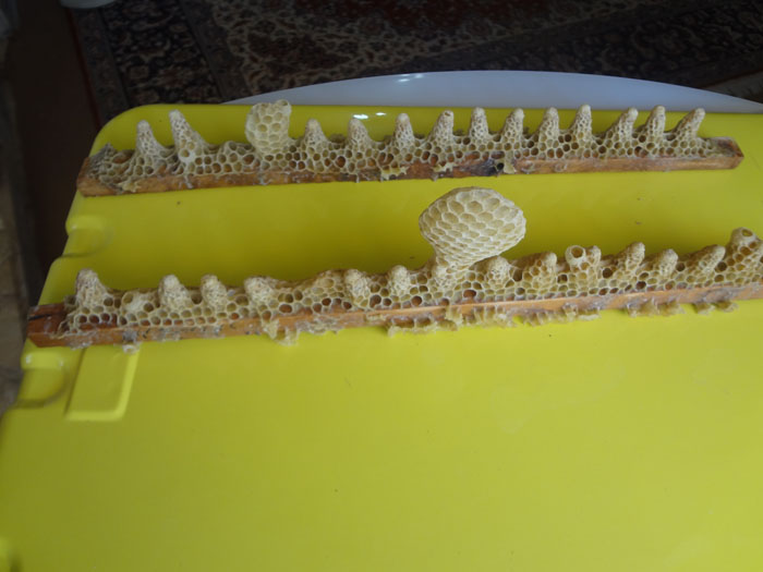 نه دوست من اشتباه نشه قرار نیست شما از اول فصل تا اخر فصل ملکه رو حبس بکنی..این وسیله برای اینکه شما برداشت یکنواخت و بدونه دردسری داشیه باشی وتلفات رو به حداقل برسونی..تقریبا 20روز قبل از شروع صحرا یعنی اوج شهد شما باید این کار رو بکنی وبعد از عسل گیری سریع ملکه رو ازاد بکنی وشروع کنی به تغذیه تا دوباره به سازمان اولیه خودش برگرده..این کاری که شما میکنی که پدر زنبور رو در میاره..تازه میتونی 4روز بعد از حبس ملکه ژله هم برداشت کنی چون شاخون میزنه