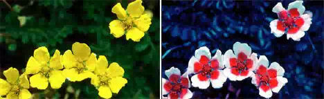 تو يكي از مباحث يكي از دوستان گفته بودن كه چطور يه زنبور گلي رو پيدا ميكنه و تشخيص ميده كه كدوم گل شهد بيشتري نسبت به ديگري داره .هر چقدر مركز گل در اثر تابش اشعه ماورابنفش بيشتر تيره باشه اون گل شهد بيشتري داره و زنبور بيشتر به اون گل جذب ميشه.