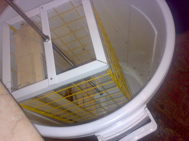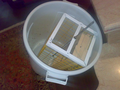 من دیروز اکستراکتور دست سازم را که مخزنش یه ظرف زباله بزرگ بود را آزمایش کردم. البته چون یه قاب عسل را میخواستم عسل گیری کنم و سعی کردم که طرف مقابل سبد نگهداری قابها را با قاب خالی هم وزن کنم ولی متاسفانه وسط کار شان عسل پاره شد و نتیجه نگرفتم . ولی این را پی بردم که بدلیل سبک بودن سطل پلاستیکی و لنگر زدن محور در حین کار آزمایش موفقی نبود.