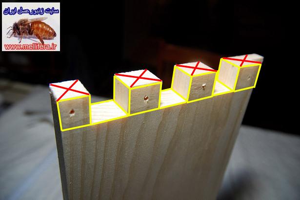 درضمن چون ارتفاع شیار 2 سانته و ضخامت قابها هم 1 سانته دقیقا 1 سانت فضا بین قاب و سقف کندو باقی می ماند و اینکه چون ضخامت چوب 18 میل میباشد ارتفاع دریچه ورود کندو 18 میل میشود.