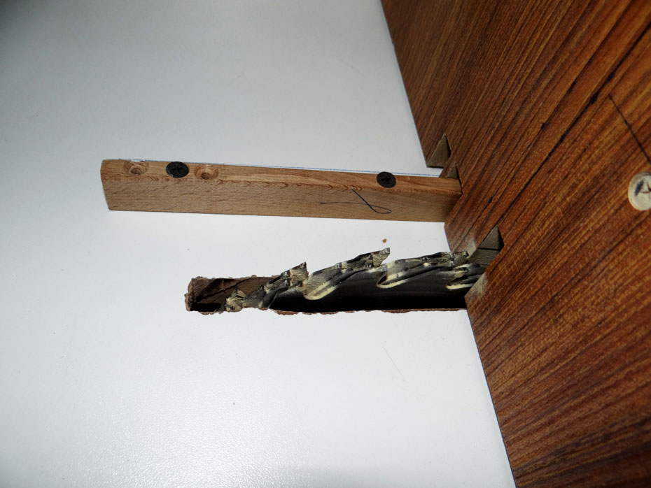 و بعد از نصب اره گرد بر زیر صفحه اره رومیزی کامل شد حالا نوبت این بود که به یک روش حرکت رفت برگشتی روان به چوبهای کندو بدم
