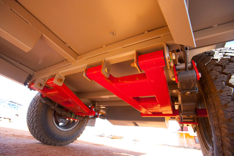 در مورد امنیت چند نکته الزامی به نظر می رسد. نخست اینکه تایر ها باید قفل هایی داخل رینگ داشته و حتی الامکان سایز تایر ها کوچک و غیر متعارف باشد. دوم اینکه کفه ی کابین باید مجهز به قفل دیفرانسیل یا چیزی شبیه به آن گردد و سوم اینکه چنانچه دیواره بیرونی کابین از جداره هایی همچون حلب درست شود٬ کمتر مستعدِ حریق و دستبرد خواهد بود.