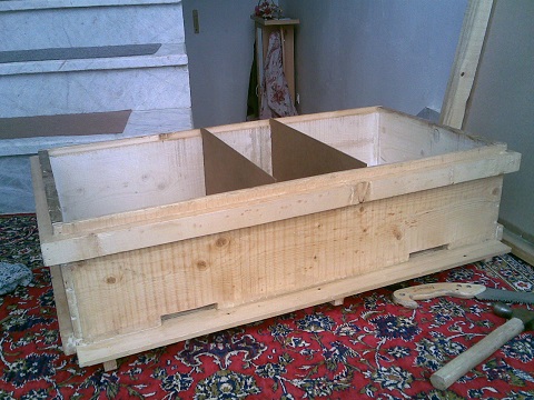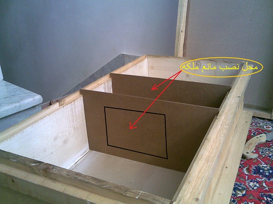 این یک کندوی 25 کادری (10-5-10) هستش که به صورت 2 ملکه ای طراحی شده، یعنی 2 کندوی 10 کادر که از وسط به هم متصل هستند و بین آنها مانع ملکه وجود دارد، بگونه ای که هیچ یک از ملکه ها امکان ورود به لایه وسط رو ندارند.