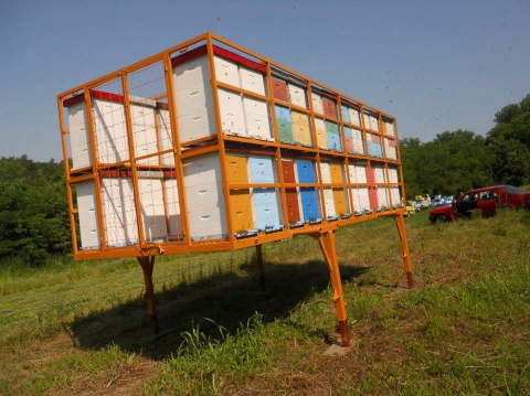 در حمل و نقل کندو ها تمام کف بارکش ولی در استقرار که احتمال سقوط کندو وجود ندارد کندو ها رو هم و در 2 ردیف کنار قرار میگیرند و وسط محل استقرار فرد و ابزار می باشد
