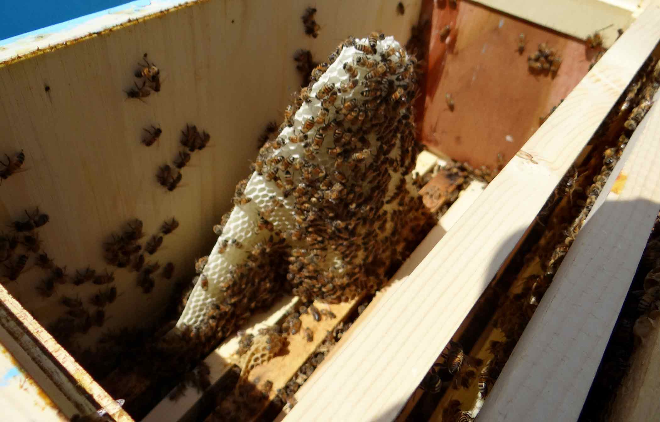 اگه تو شکل اشتباه ندیده باشم هرزه بافی رو سلول نر زدن . این نشون میده تو فصل بهار و اوج تخمریزی ملکه هست و زنبورها طبق غریزه میخان نر تولید کنن . بنابراین برگه موم رو نمیبافن یا اون رو پاره میکنن .