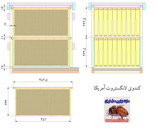 از میان کندوهای اشارهشده کندوی لانگستروت یکی از پرطرفدارترین کندوها در میان زنبورداران دنیاست. نوع کنونی کندوی لانگستروت طی سالها تکامل یافته و کارایی خود را به اثبات رسانده است. عمده کندوهای مدرن ایران نیز از این نوع کندوست. پیش از بررسی کندوی زنبور عسل ایران، ضروری است که به اختصار کندوی لانگستروت آمریکا را از نظر طرح و اندازه شرح دهیم تا به عنوان شاهد مورد استفاده قرار گیرد.