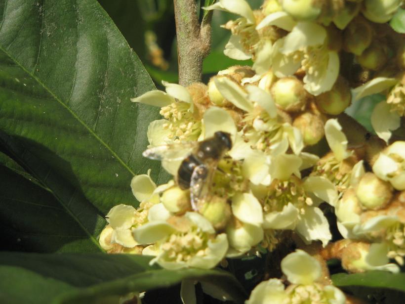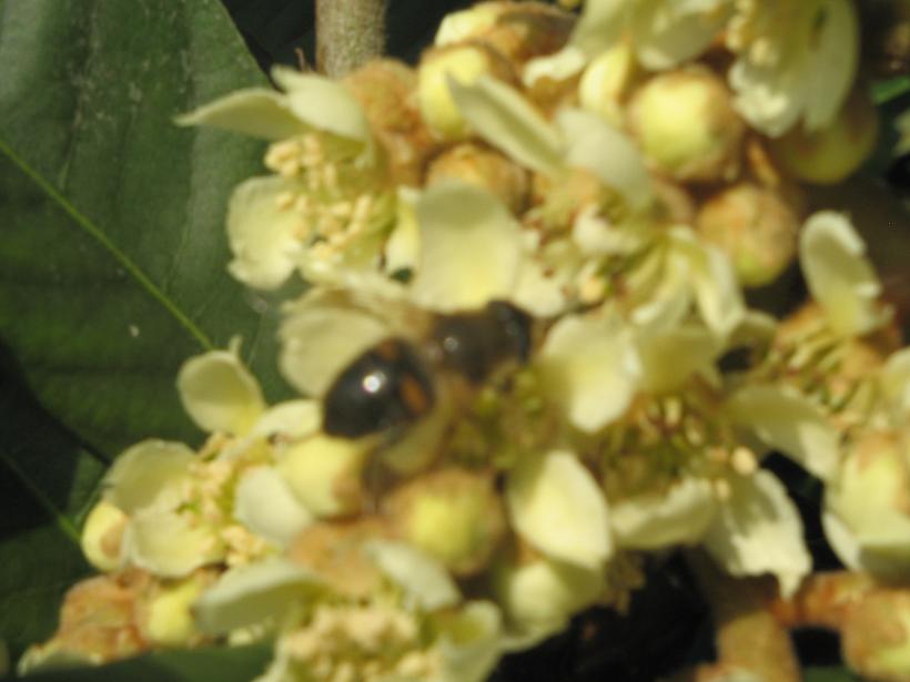 تو باغی که کندوهام رو گذاشتم چند تا درخت ازگیل هست، روی گلهای ازگیل و کناره زنبورهای خودم یه نوع زنبور دیگه هم هست.