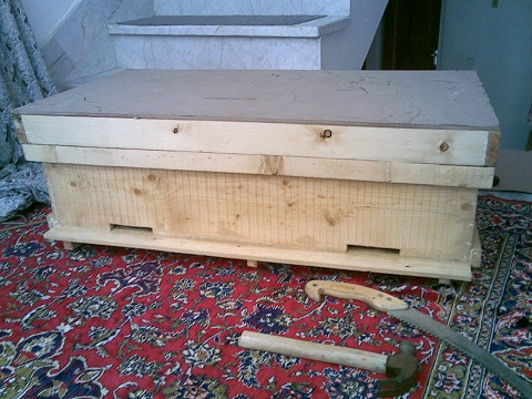 این یک کندوی 25 کادری (10-5-10) هستش که به صورت 2 ملکه ای طراحی شده، یعنی 2 کندوی 10 کادر که از وسط به هم متصل هستند و بین آنها مانع ملکه وجود دارد، بگونه ای که هیچ یک از ملکه ها امکان ورود به لایه وسط رو ندارند.