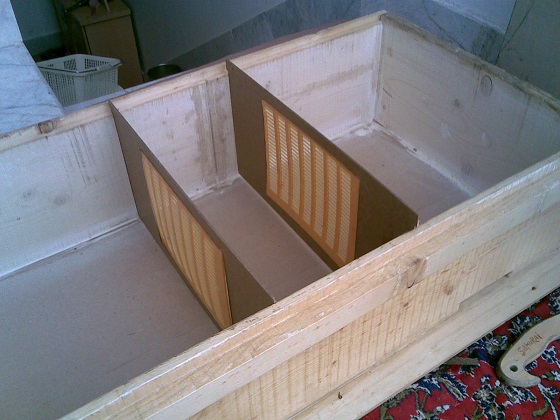 روش کار به این صورته که ما 2 کادر پر از تخم و لارو یا شفیره رو تو وسط قرار میدیم و 3 کادر دیگه رو به صورت 3 لایه و در هر لایه 20 عدد سلول پیوند خورده(جمعا 120 سلول ملکه)و به صورت یکی در میان در بین کادرهای شفیره قرار میدیم.