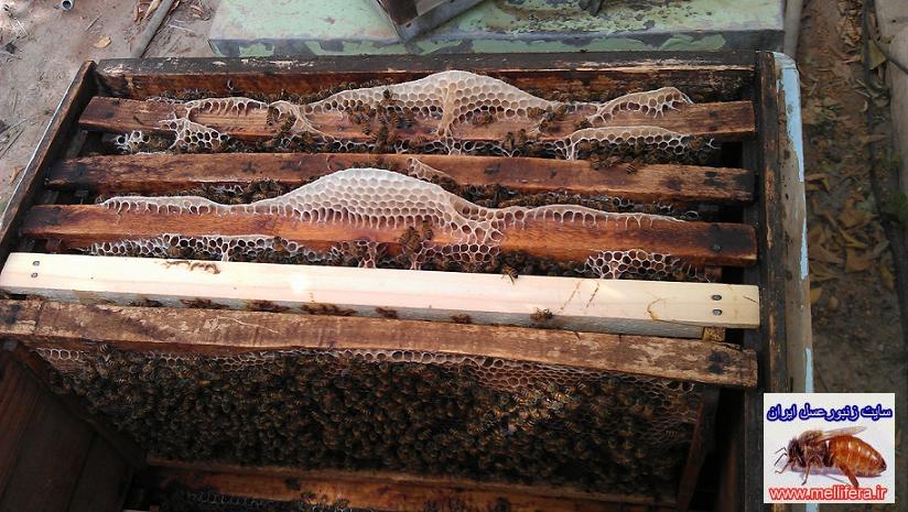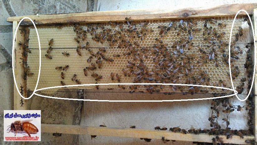 2.در این مورد هم زنبورها به حدی موم رو پاره میکنند که فقط چیزی در حدود 2 الی 3 سانتیمتر موم به قسمت بالایی متصله،به گونه ای که وقتی قاب رو بیرون میاری به صورت نوار ازش موم آویزونه؛پس زیاد نمی تونه برای عبور و مرور باشه...