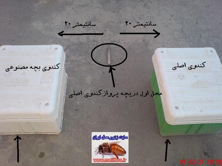 منو تو عزيز در مورد بچه مصنوعي گرفتن بايد شما به همون مقدار كه كندوي اصلي رو به يه سمت انتقال ميدين مثلا 20 سانت كندوي دومرو هم بايد 20 سانت در جهت مخالف كندوي اصلي قرار بدين.