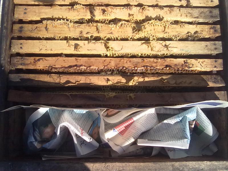 پوشال كاغذ و روزنامه براي پر كردن جاي خالي كندو(زمستان گذراني)
