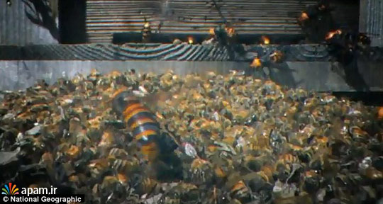 اينم يه زنبور كه واقعا وحشت ناك بود دور و بر يك سگ مي چرخيد سگه از ترس فرار كرد منم با يك پارچه محكم زدمش زمين ولي بعد از چند دقيقه بلندشد